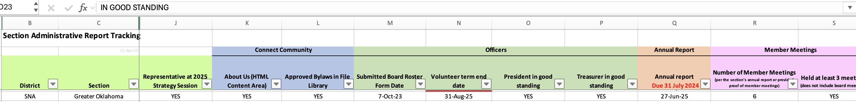 I am pleased to announce that the ISA Greater Oklahoma Section continues to remain in Good Standing with ISA