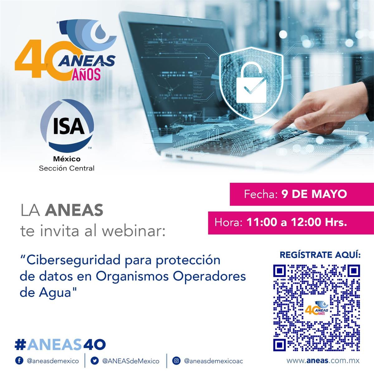 ✅Continuando con las actividades de colaboración entre la International Society of Automation & ANEAS, tenemos el placer de invitarles al próximo webinar que se llevara acabo el día➡️9 de mayo a las 11:00 hrs. 🔵Con el tema: Ciberseguridad para protección de datos en organismos operadores de agua.