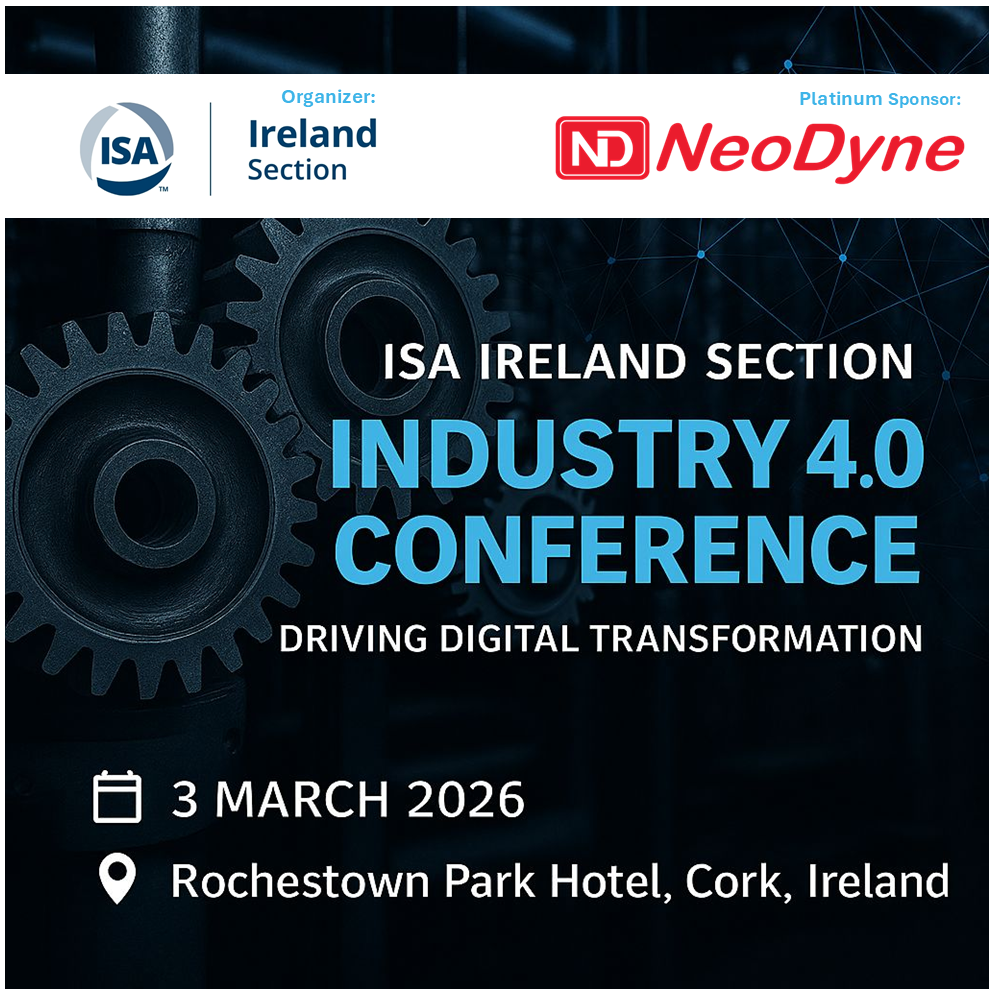 We are pleased to invite you to join us at the upcoming ISA Ireland Section Industry 4.0 Conference, bringing together industry professionals, engineers, and technology leaders for a full day of insight, innovation, and networking.